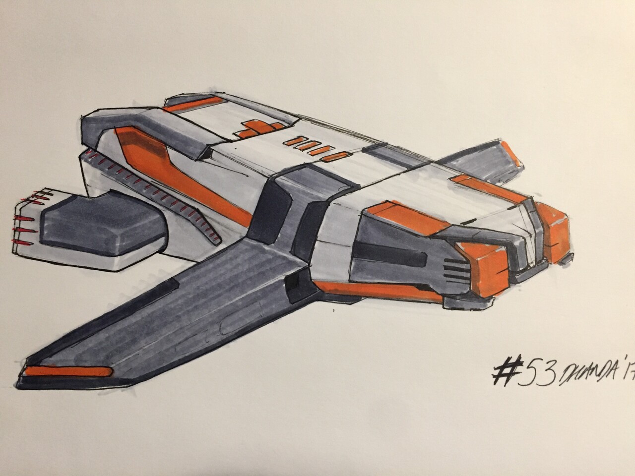 drawing- what used to take a full hour or more is done much quicker now and more efficiently. Thanks to better skill with markers and my draftsmanship. Still, a long way to go to reach Scott Robertson levels though... a long way.
